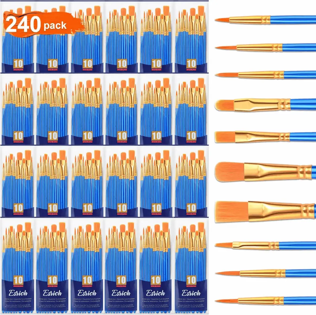 ESRICH Watercolor Brush Set, 24 Packs / 240 Pcs Acrylic Brushes,Nylon Brush Head, for Oil Painting, Gouache, Face,Ceramics etc, Kid’s and Adults Painting Arts and Crafts Sets.(Blue) Visit the ESRICH Store 4.7 4.7 out of 5 stars (697) Amazon’s Choice 200+ bought in past month $29.99 with 6 percent savings-6% $29 https://amzn.to/3WTYT7N