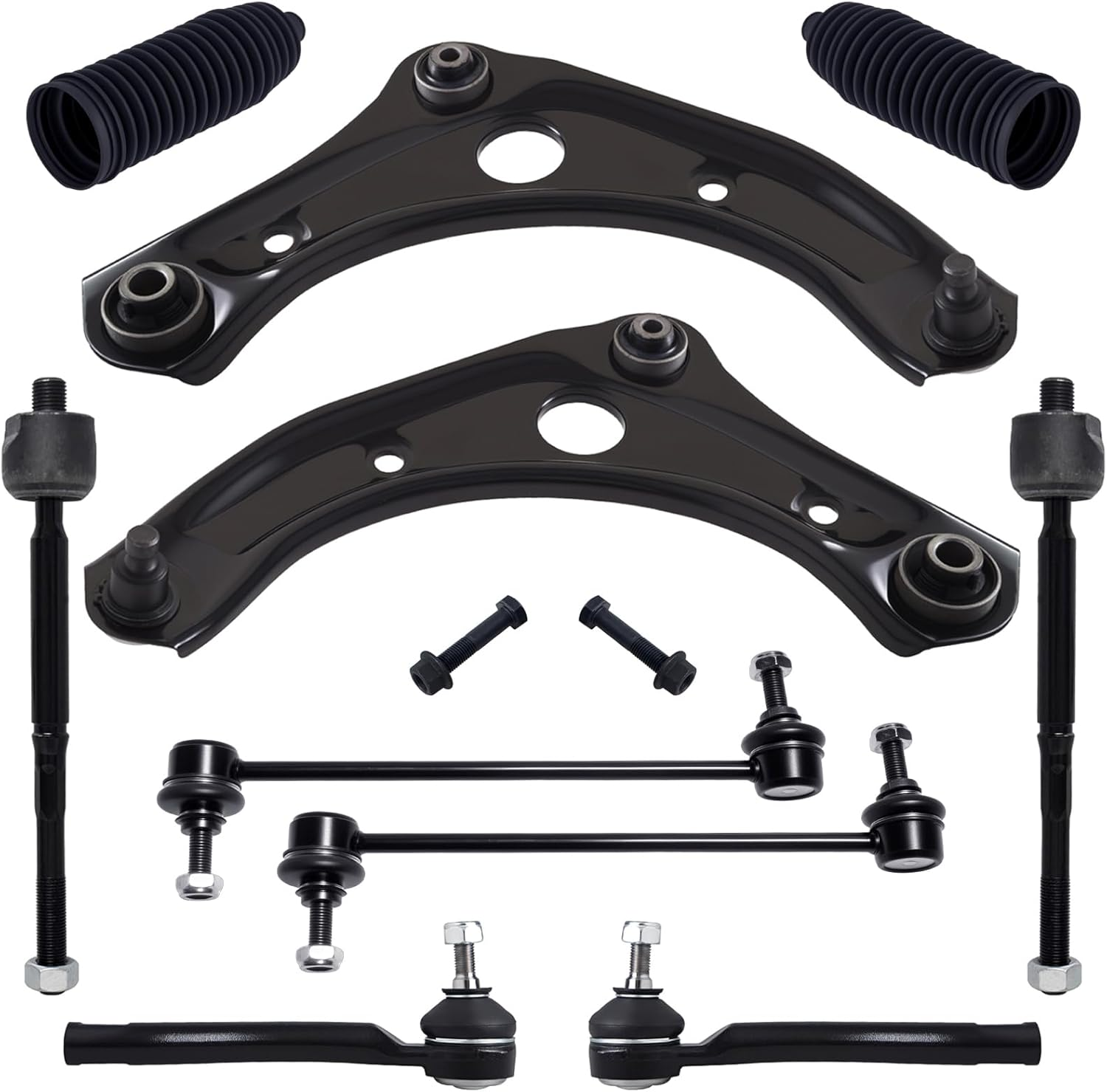 TUCAREST 10Pc Suspension Kit Fit For 12-19 Ni-ssan Versa, 2015-2019 Micra, 2 Front Lower Control Arm w/Ball joint + 4 Outer Inner Tie Rod + 2 Sway Bar + 2 Boots [# K621576 K750098 EV800862 ES801200]