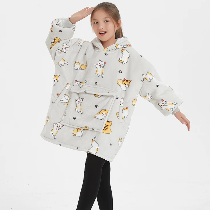 Cozy wearable blanket sweatshirt designed for children. Features animal‑themed design, warm winter fabric, and personalized hoodie style with sleeves. Ideal for keeping kids comfortable during colder months. https://offer.alibaba.com/cps/38je2je8?productId=1600833870523&from=feeds&bm=cps&src=saf