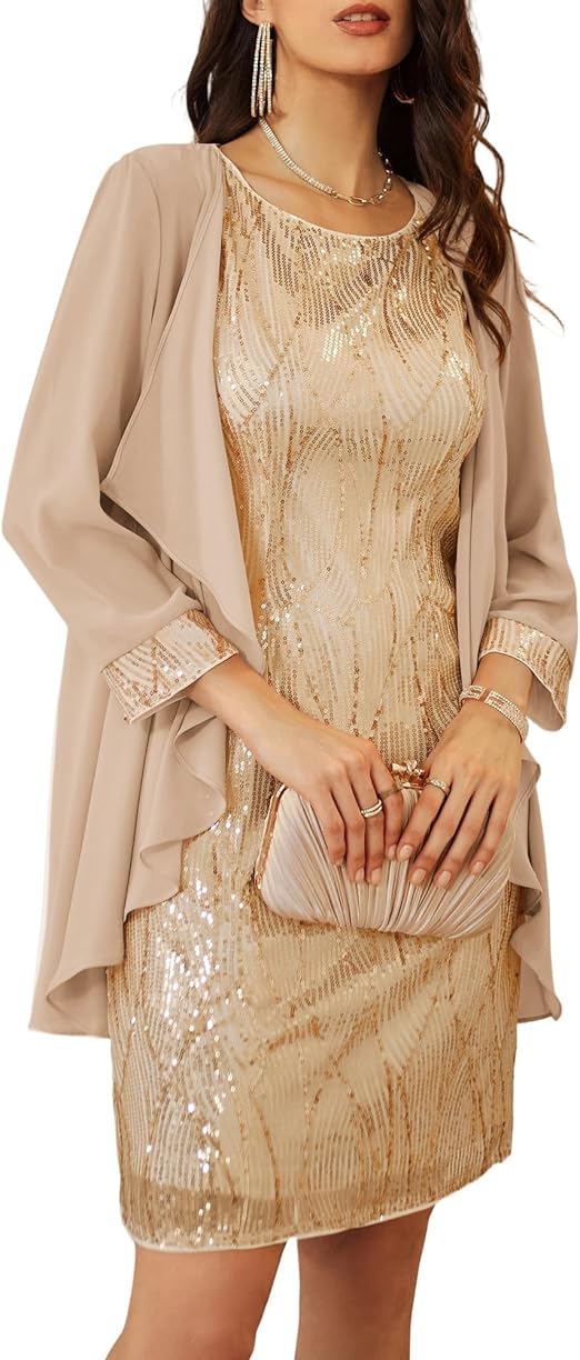 GRACE KARIN Women's Sequin Dress - Wedding Guest & Mother of The Bride Formal Dress - Two Piece Knee Length